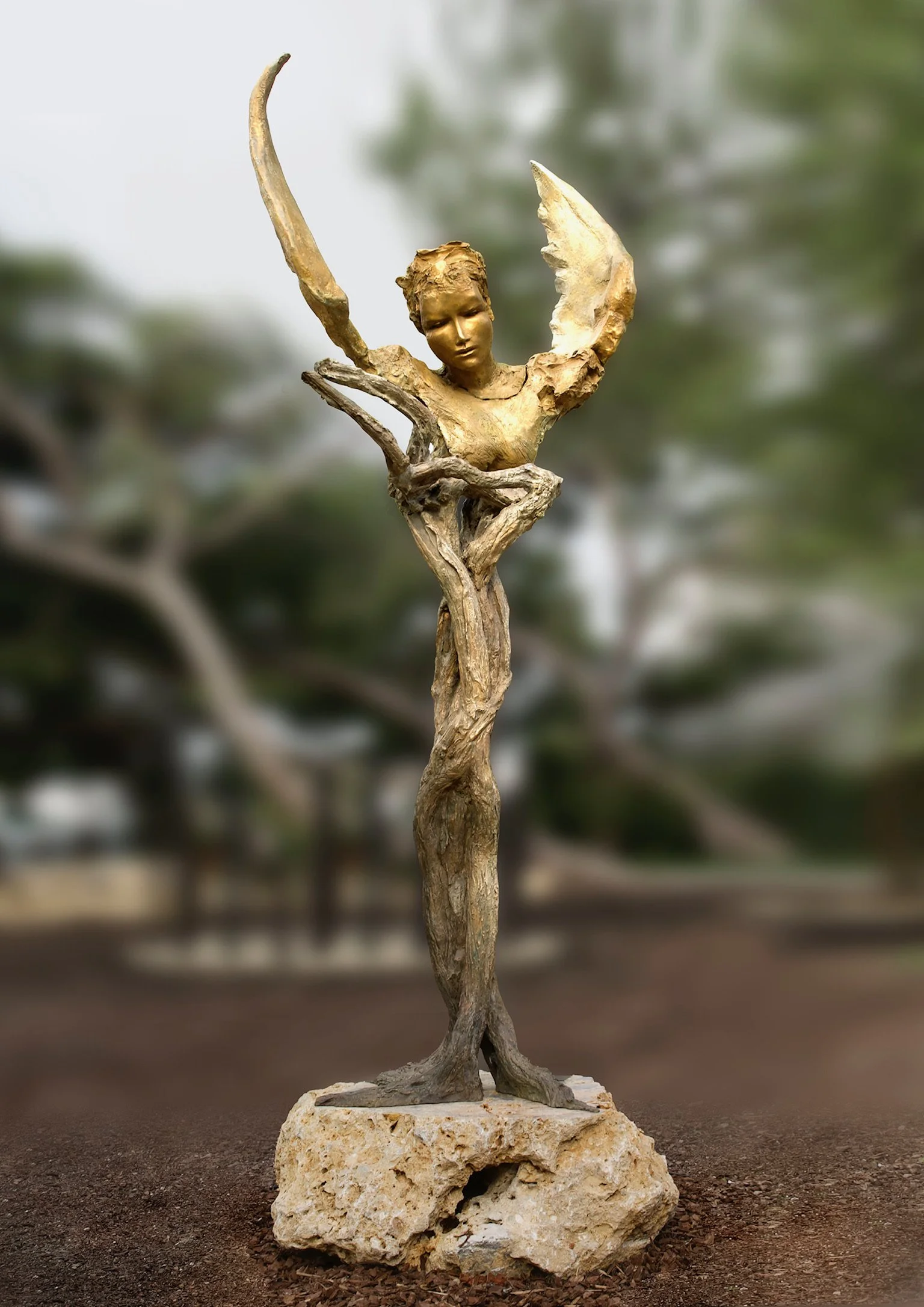 View fullsize Winged Daphne sculpture in bronze and tufo stone